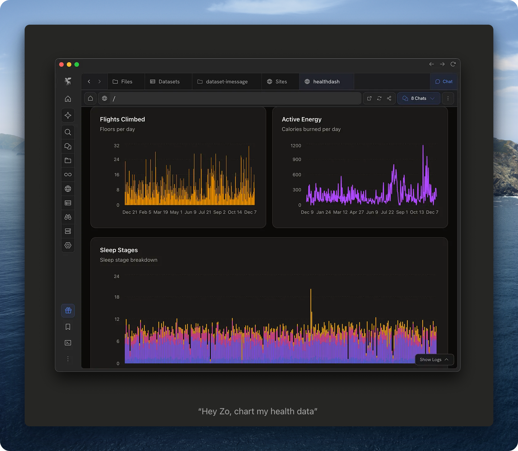I see huge potential for using AI to analyze your health data. Here they connected Apple Health data with sleep stages, calories burned per day, activity levels. You can ask questions about your data.